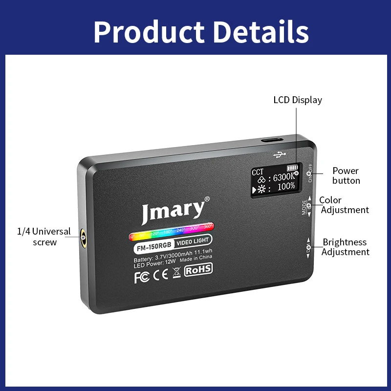 چراغ JMERY LED Video Light 2500K‑9000K یک نور ویدئویی حرفهای قابلحمل است که برای تولید محتوا، ویدئو بلاگ، عکاسی، لایو استریم و فیلمبرداری طراحی شده. این نور با دامنه دمای رنگ وسیع ۲۵۰۰ تا ۹۰۰۰ کلوین به شما امکان میدهد از نور گرم (طلایی) تا نور سرد آفتابی/روز را بسته به نیاز صحنه تنظیم کنید.