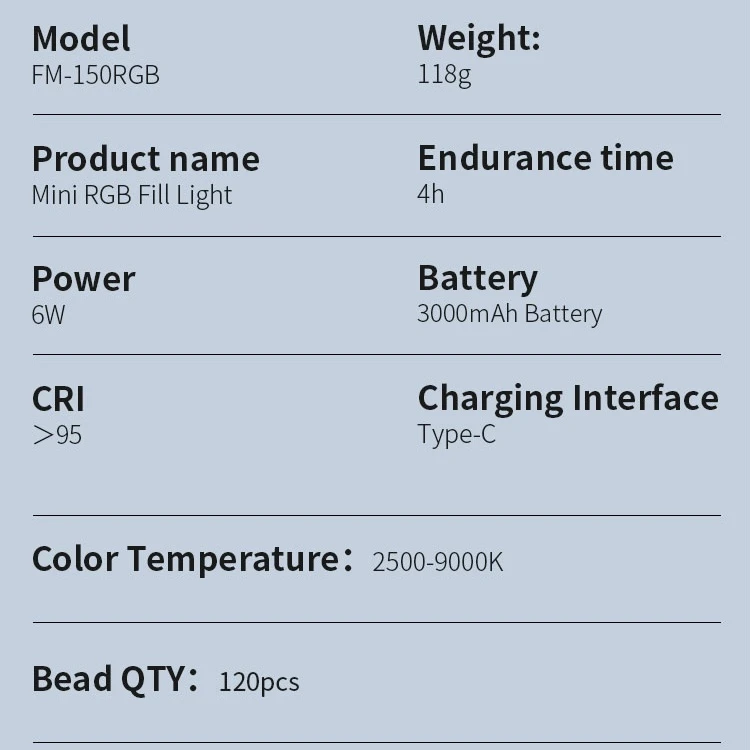 علاوه بر این، فناوری RGB باعث میشود که چراغ بتواند افکتهای رنگی خلاقانه برای ویدئوها ایجاد کند، نور را مطابق با فضای محیط تنظیم کند و حالتهای نورپردازی متنوعی ارائه دهد. با شدت روشنایی قابل تنظیم (۰–۱۰۰٪) و پرتاب نور مطلوب، میتوانید پوست، سوژه و پسزمینه را با کیفیت عالی و رنگ دقیق روشن کنید — ویژگیای که مخصوص تولیدکنندگان محتوا و عکاسان اهمیت دارد.